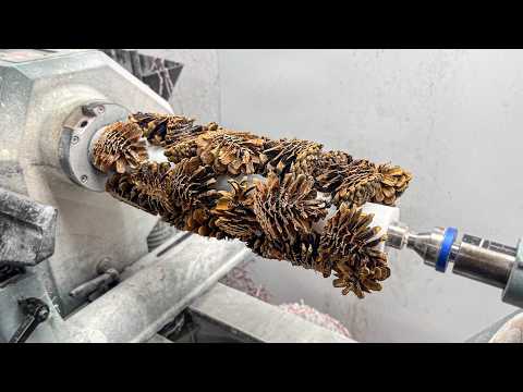 Woodturning Pinecones in Epoxy Resin into a Functional Vase